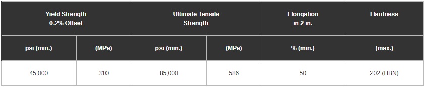 Tính chất cơ học của Inox 309Bảng dưới đây liệt kê các tính chất cơ học của Thép không gỉ ủ Mác 309.
